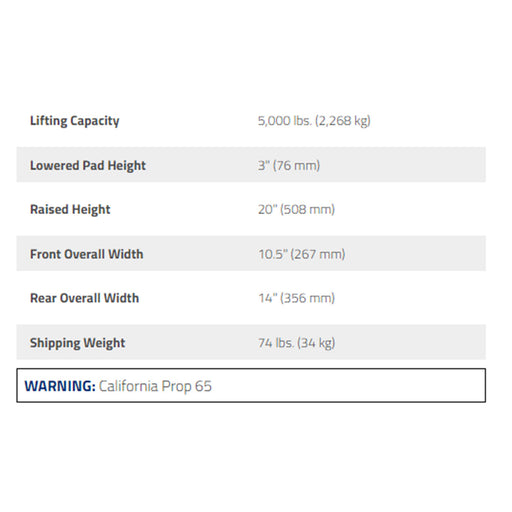 RangerThis long-chassis garage floor jack is designed for extreme lifting applications up to 20,000 lbs. It safely lifts massive vehicles 23" in the air,...