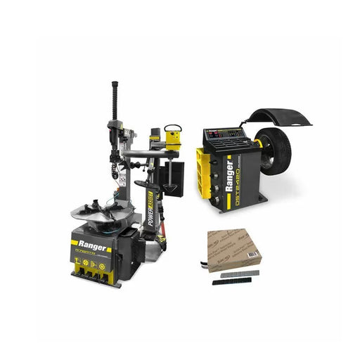 View full detailsRanger (R98/DST2)LV Changer/Balancer/Weights - Package Deal: (1) R980AT-L 110V + (1) DST2420-110-220V + (1) Tape Wheel Weights / Blk. & Slv. 1400 pc.