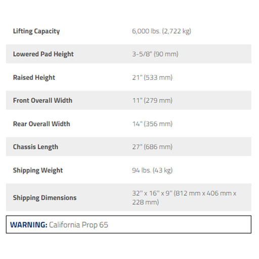 RangerThis 3-ton capacity super-duty garage floor jack offers a 21" max rise and low-profile design that’s perfect for professional shops and home garage...